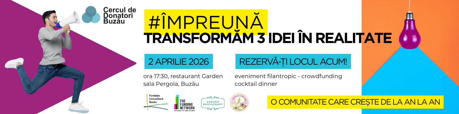 Ajută-i să facă Buzăul și mai bun. Pentru tine și pentru cei care au nevoie să se simtă acasă. Sponsorizează programele noastre și susține misiunea Fundației Comunitare Buzău de a transforma inițiative în realitate.